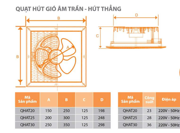 Asian-Quạt hút ẩm âm trần hút thẳng QHAT